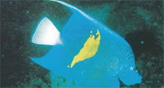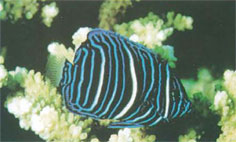 الاسم الشائع : سمكة الملائكة ذات الشريط الأصفر .