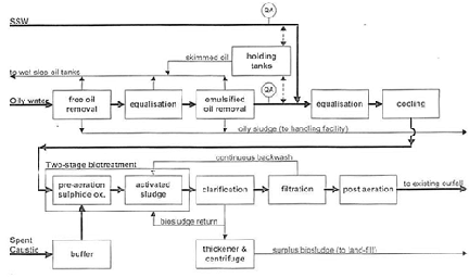 •In situ chemical/bio treatment in tanks followed by bio remediation of residual sludge was recommended.
